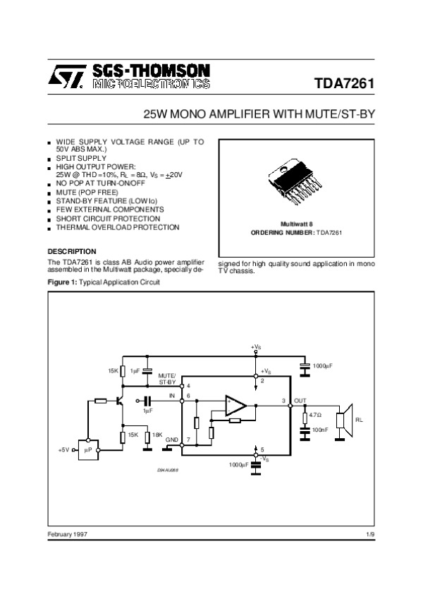 Просмотр технического описания на TDA7261
