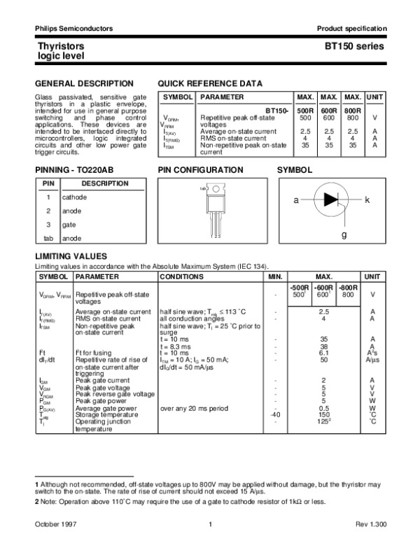 Datasheet BT150SERIES1:
