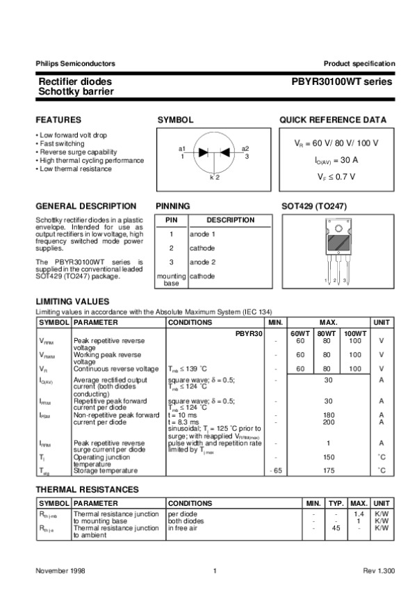 Datasheet PBYR30100WTSERIES3: