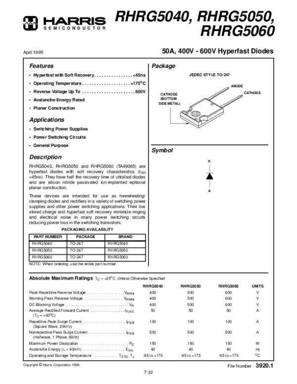 Datasheet RHRG5040:
