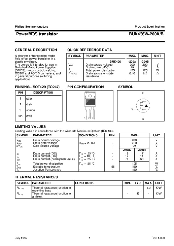Datasheet BUK436W200AB1: