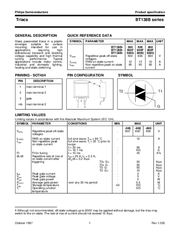 Datasheet BT138BSERIES1: