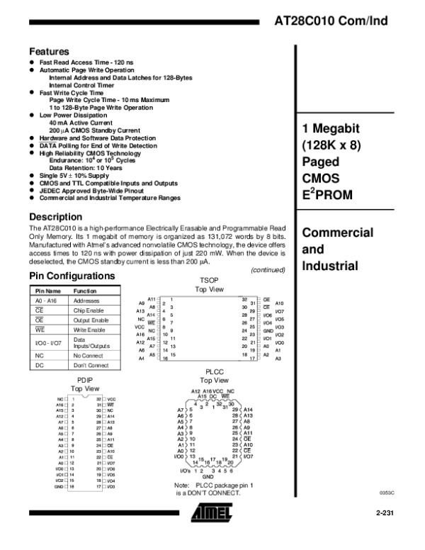 Datasheet AT28C010: