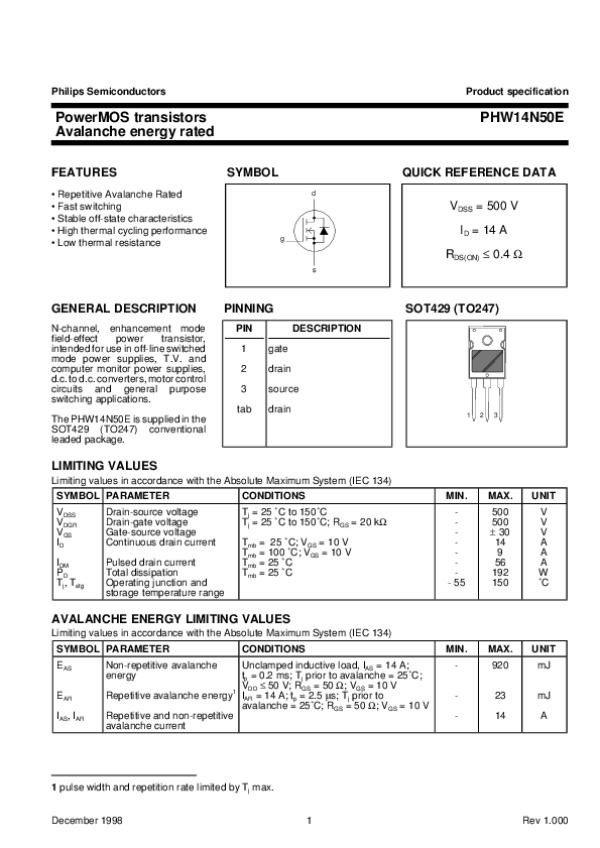 -> Просмотр технического описания на PHW14N50E3