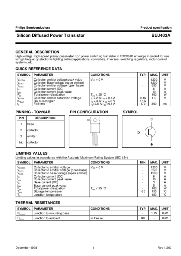 Просмотр технического описания на BUJ403A4