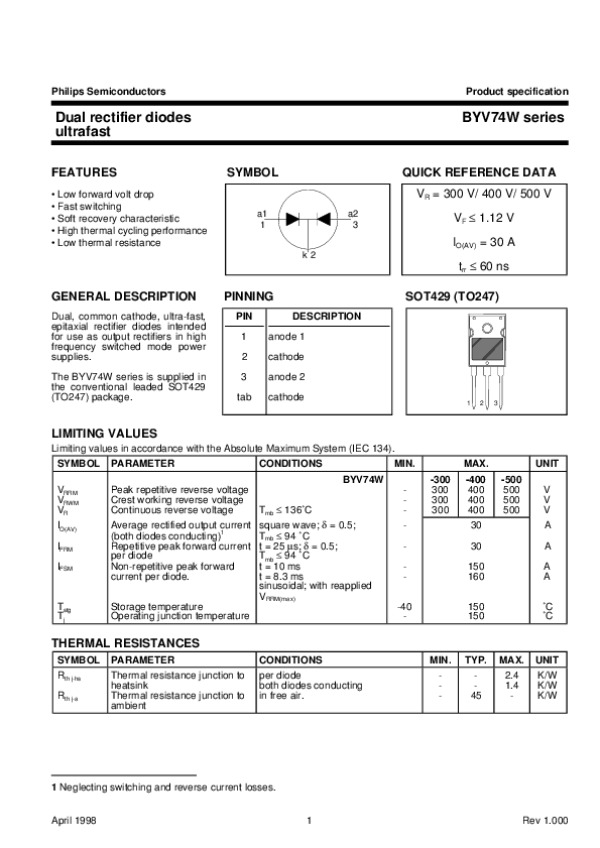 Datasheet BYV74WSERIES2: