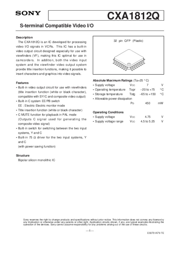 Datasheet CXA1812: