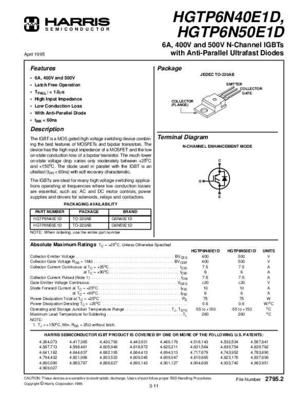 Datasheet HGTP6N40: