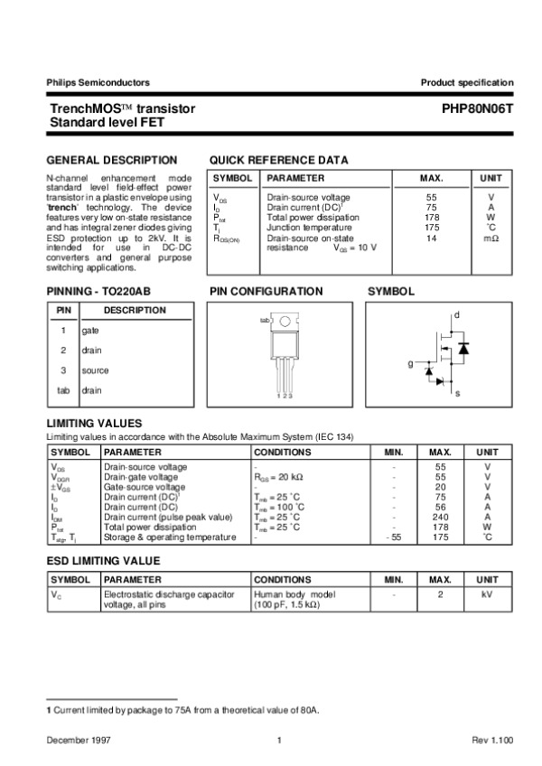Просмотр технического описания на PHP80N06T1