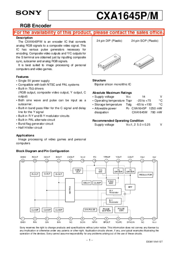 -> Просмотр технического описания на CXA1645P