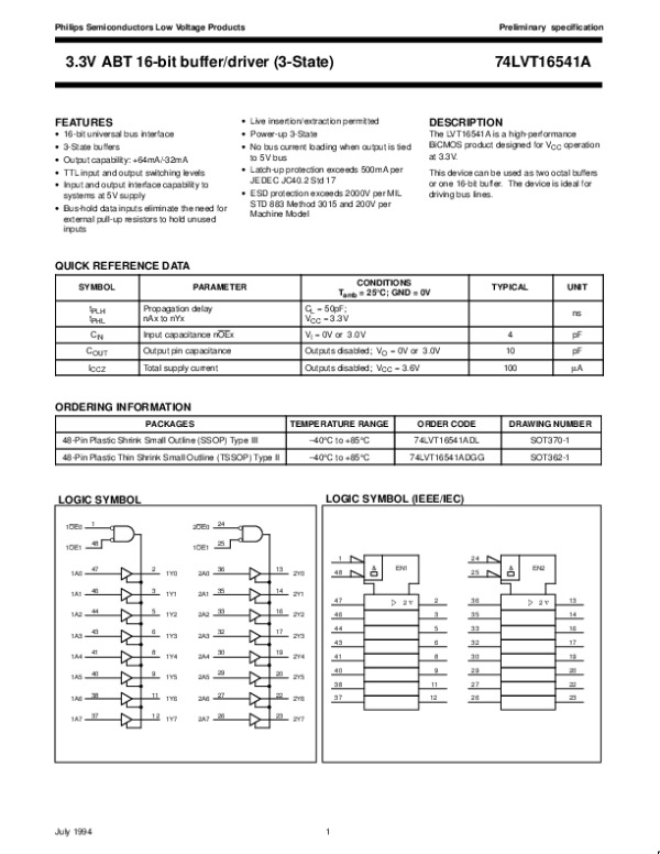 Datasheet 74LVT16541A: