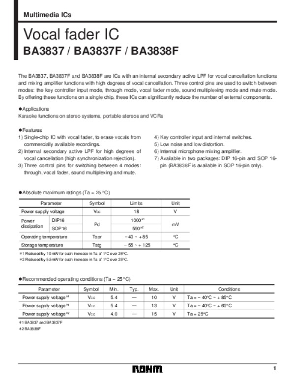 Datasheet BA3837: