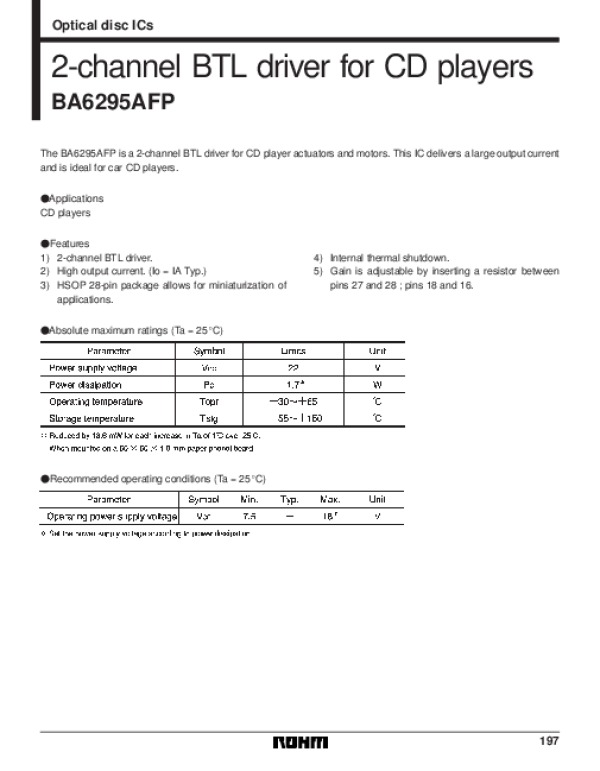 Просмотр технического описания на BA6295AFP