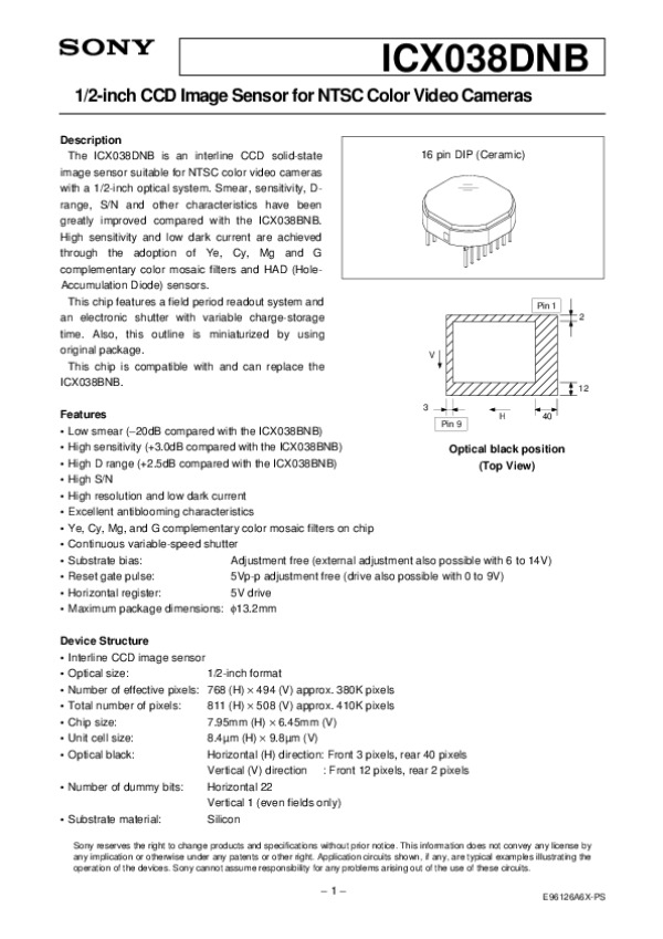 Datasheet ICX038DNB: