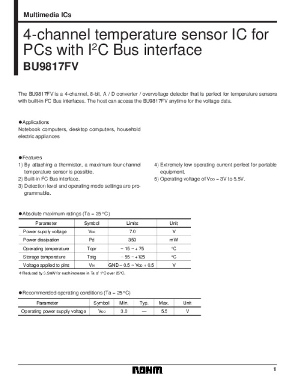 Datasheet BU9817FV: