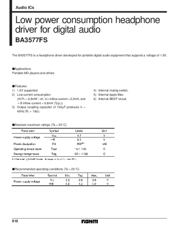 Просмотр технического описания на BA3577FS