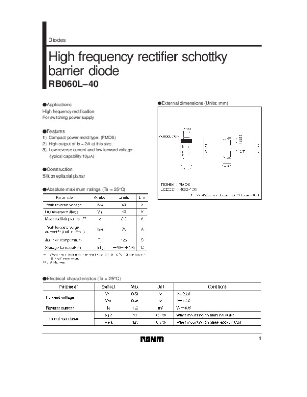 Datasheet RB060L40: