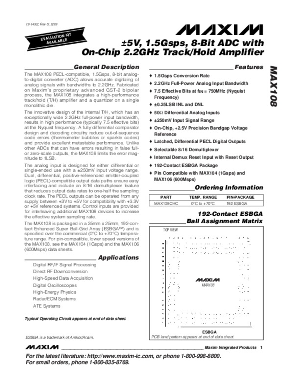 Datasheet MAX108: