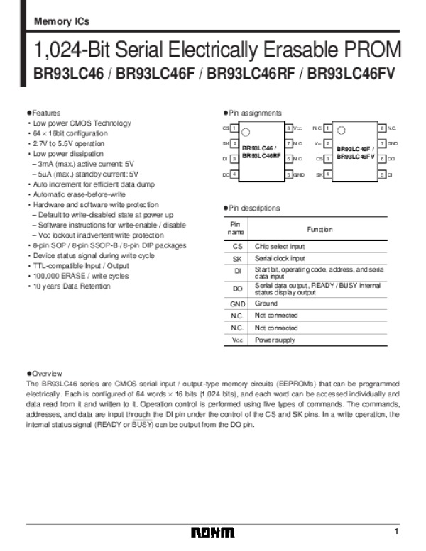 Просмотр технического описания на BR93LC46