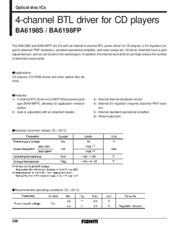 Datasheet BA6198S: