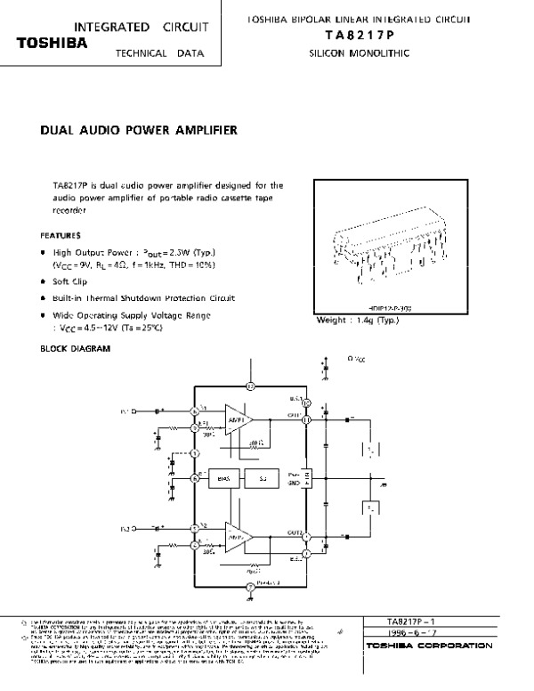 Datasheet TA8217P: