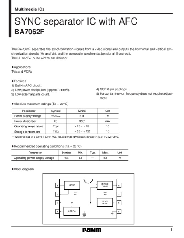 Datasheet BA7062F: