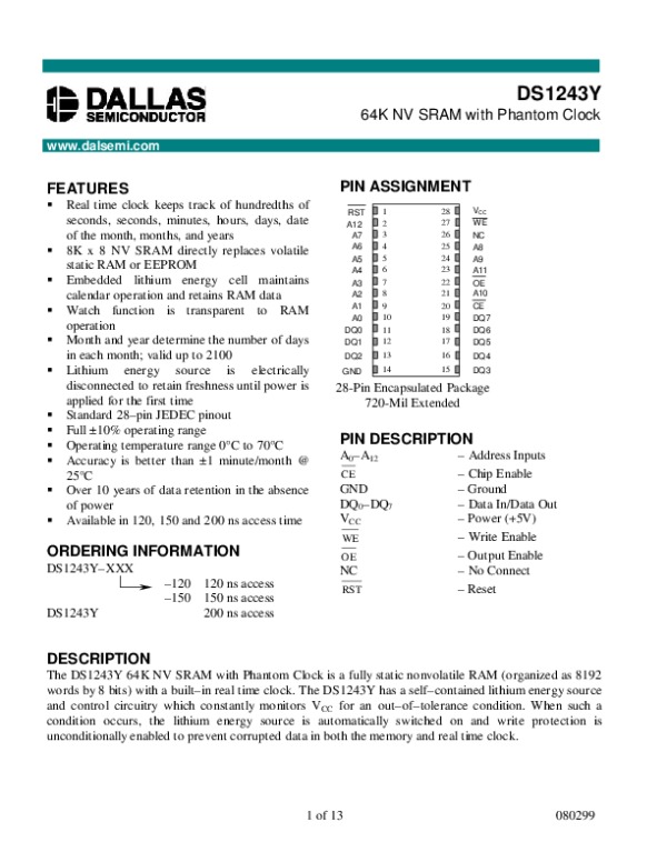 Datasheet DS1243Y: