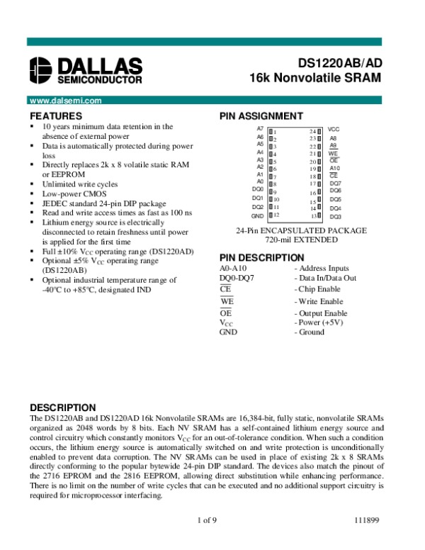 -> Просмотр технического описания на DS1220