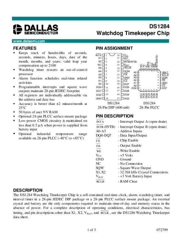 Просмотр технического описания на DS1284