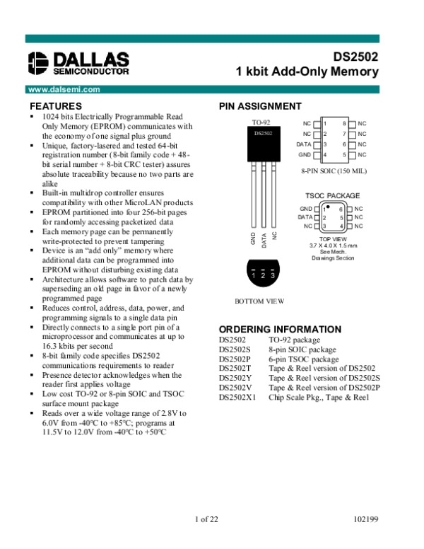 Просмотр технического описания на DS2502
