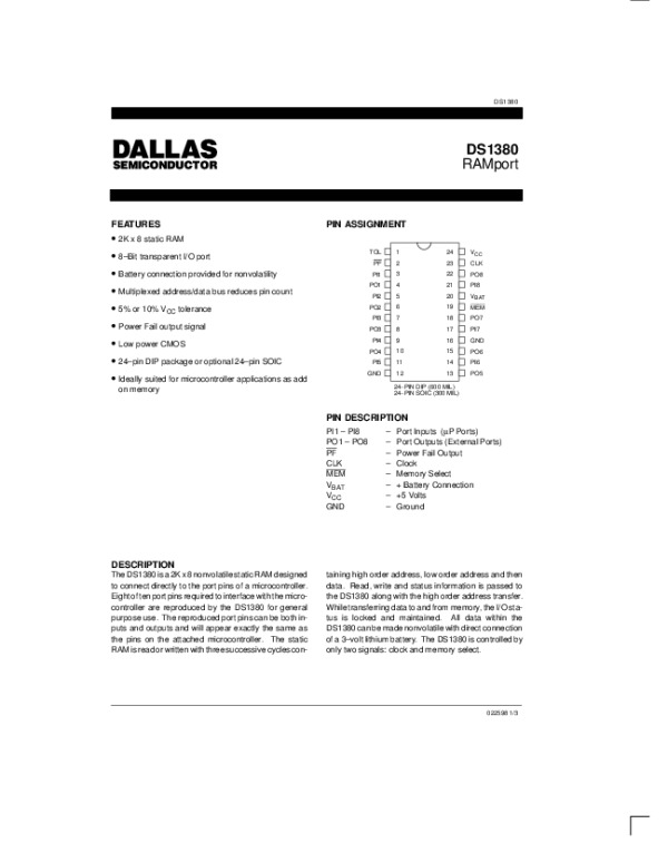 Datasheet DS1380: