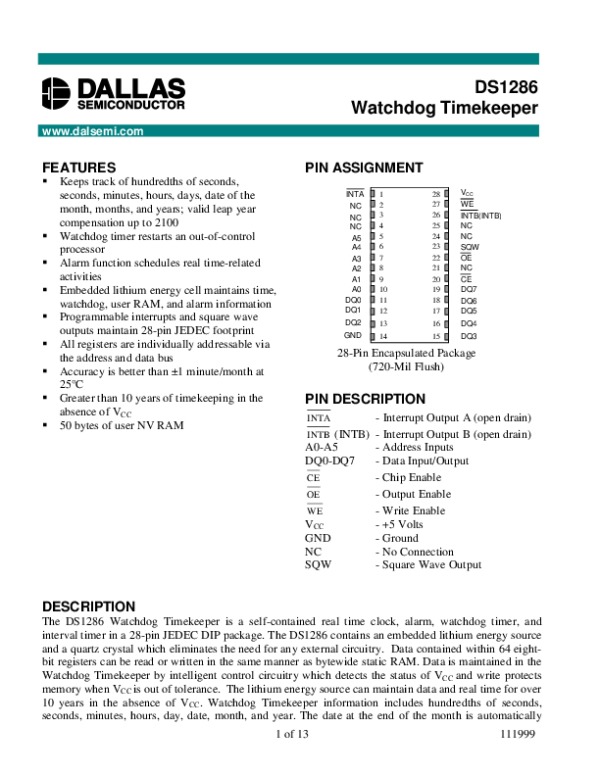 Просмотр технического описания на DS1286