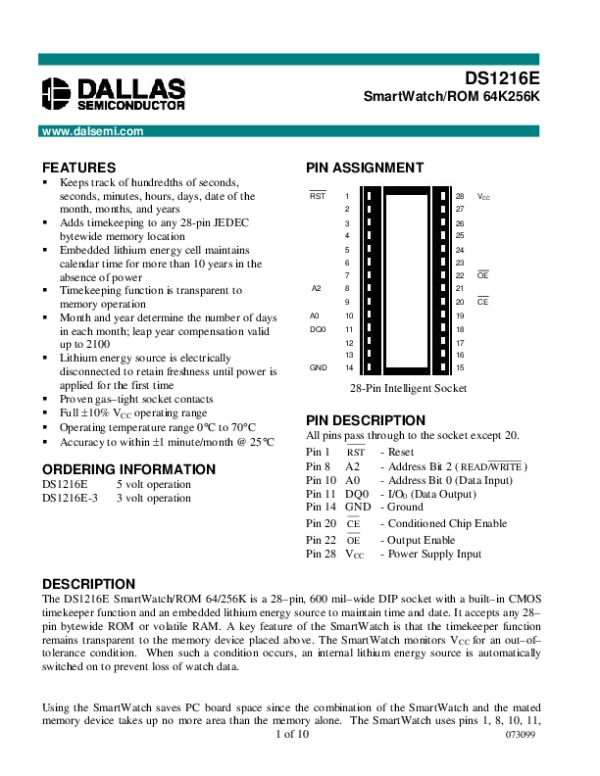 Просмотр технического описания на DS1216E