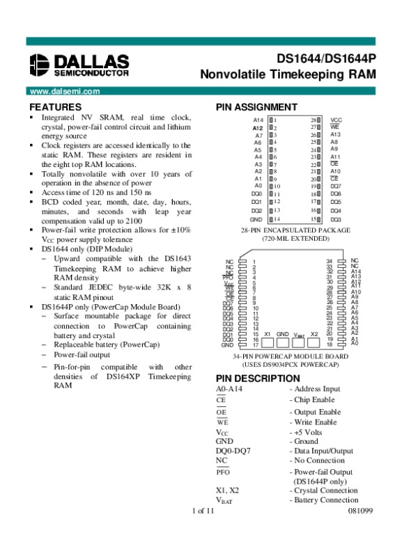 Просмотр технического описания на DS1644P