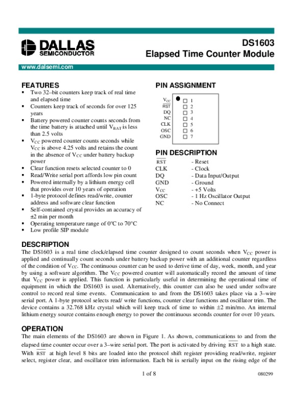 Datasheet DS1603: