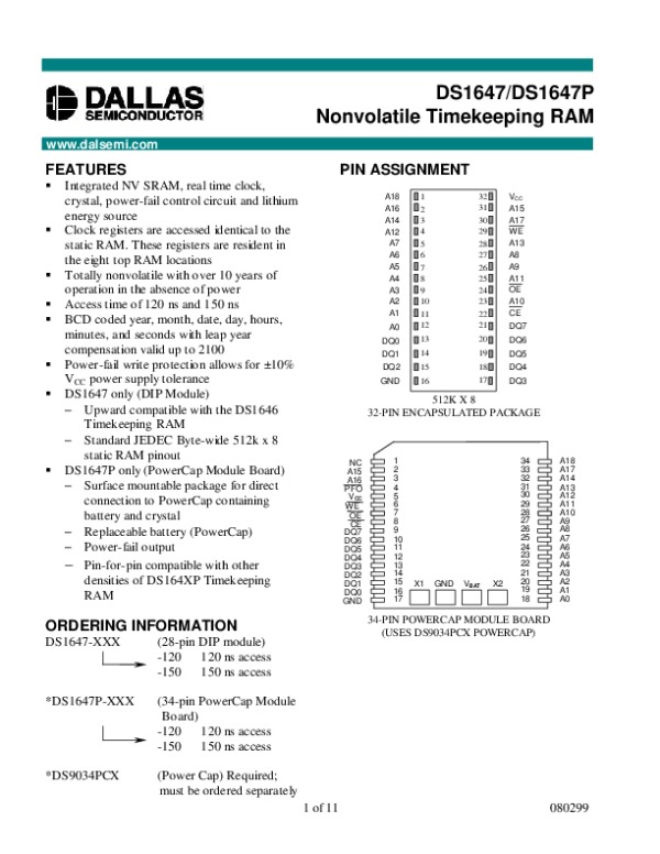 Datasheet DS1647P: