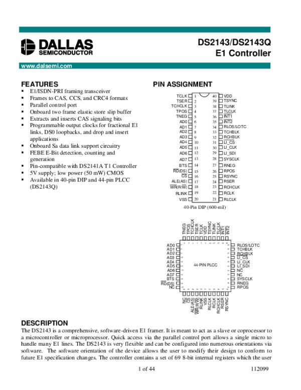 -> Просмотр технического описания на DS2143