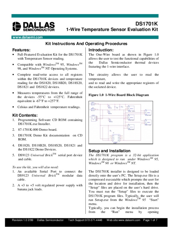 Datasheet DS1701K: