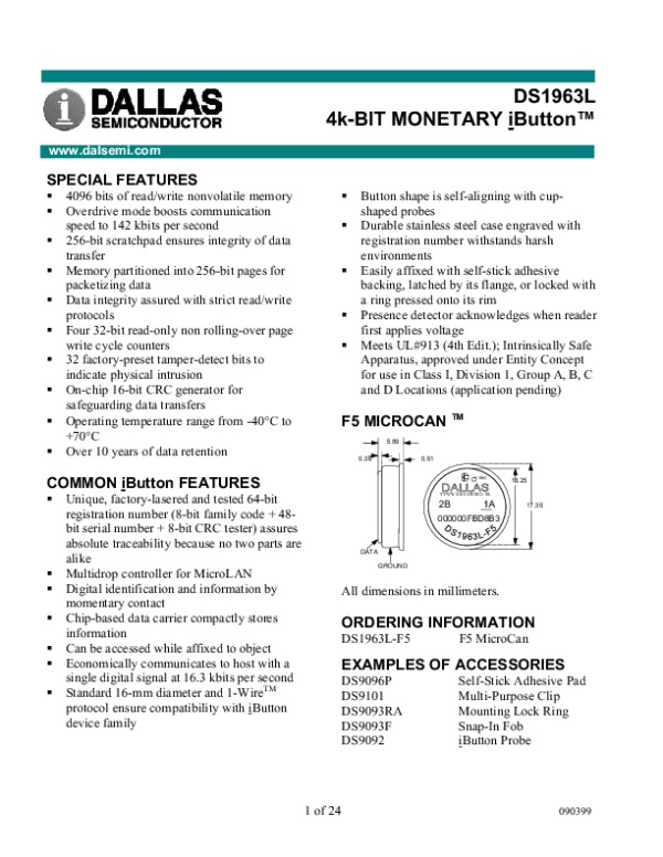 Datasheet DS1963L: