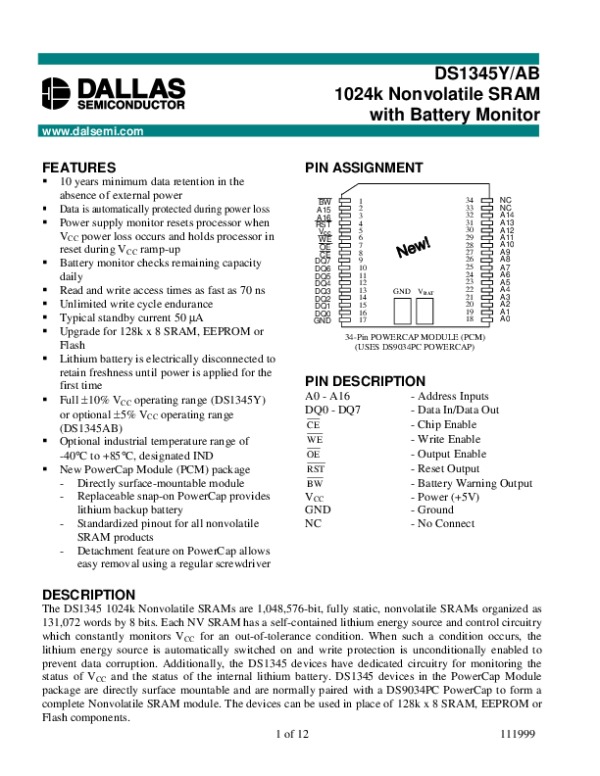 Datasheet DS1345Y: