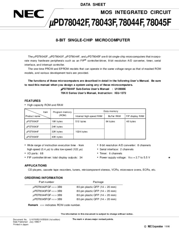 Datasheet D78042,43,44,45F: