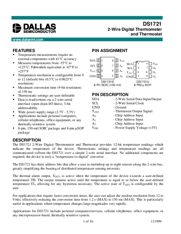 -> Просмотр технического описания на DS1721