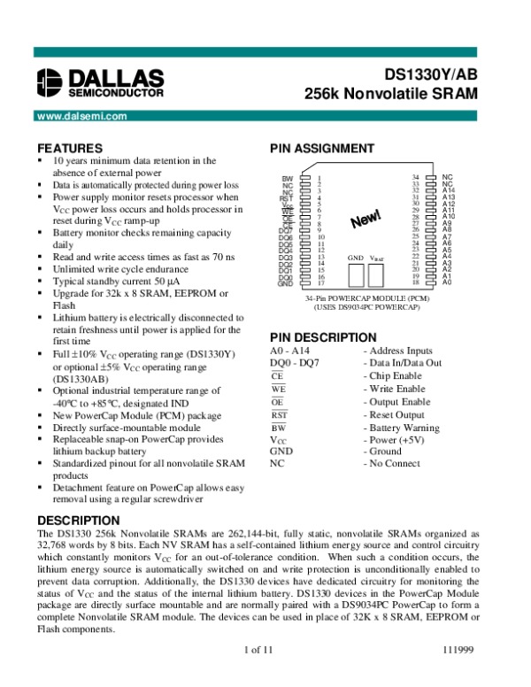 Просмотр технического описания на DS1330Y
