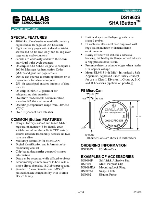 Datasheet DS1963S: