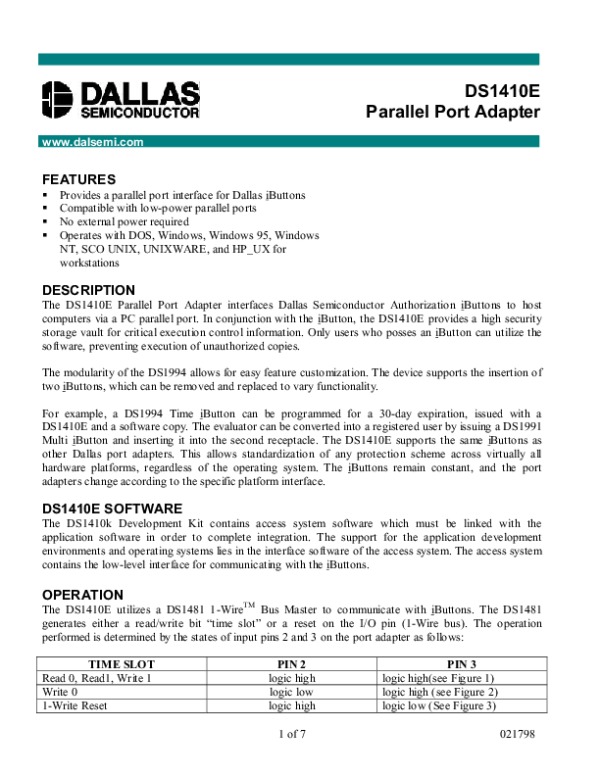 Datasheet DS1410E: