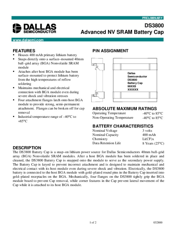 Datasheet DS3800: