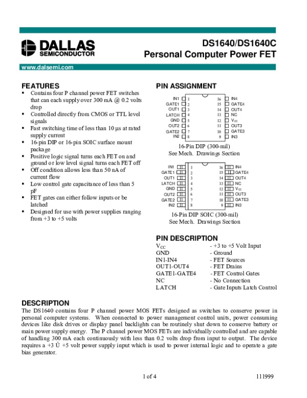 Просмотр технического описания на DS1640