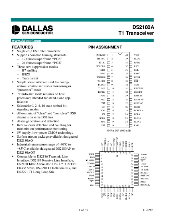 Просмотр технического описания на DS2180A