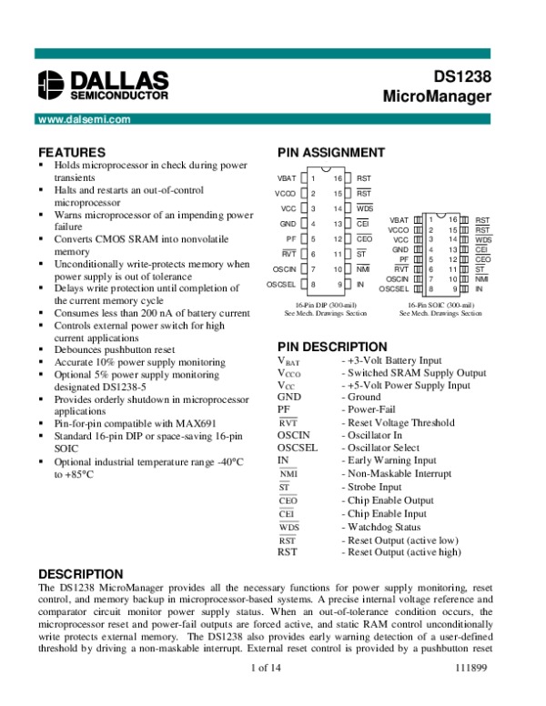 Просмотр технического описания на DS1238