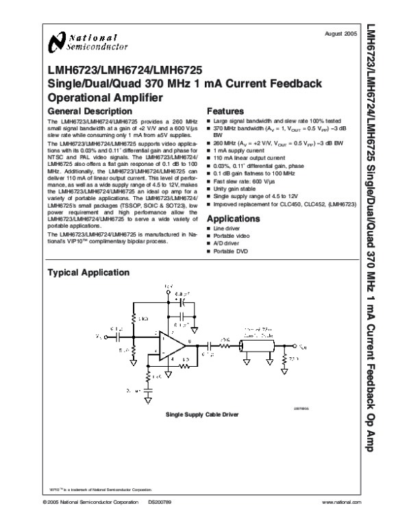 Просмотр технического описания на LMH6724